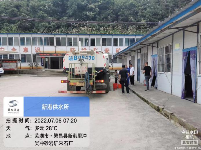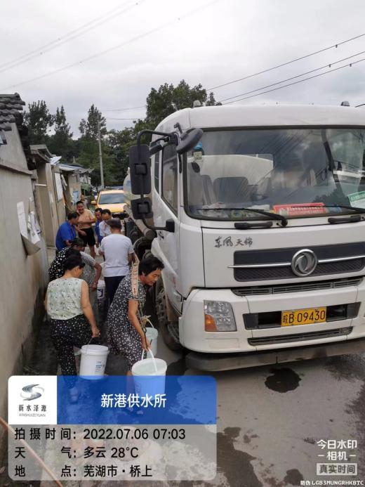 搶修同時,蕪湖首創(chuàng)工作人員積極配合新港鎮(zhèn)政府利用送水車為受影響的停水區(qū)域定時送水,保障停水期間用戶的基本生活用水需求,辦好一件件惠企利民的小事、實事。