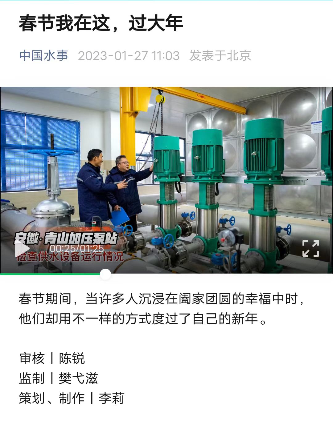 “中國水事”微信公眾號報道春節(jié)期間蕪湖首創(chuàng)一線工作動態(tài)