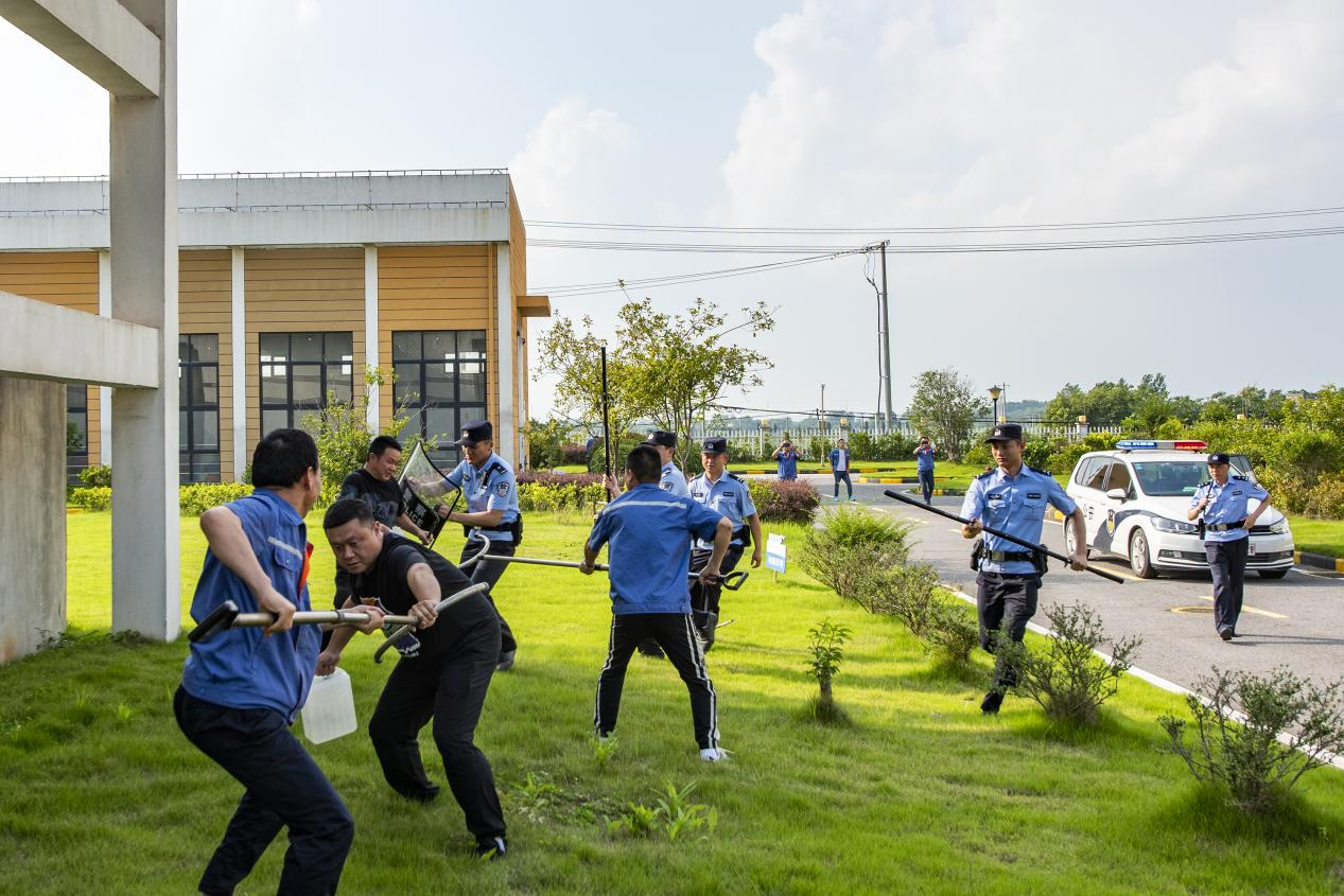 演練模擬了暴徒入侵水廠的情景,兩名“暴徒”強(qiáng)行闖入蘆南水廠,當(dāng)班員工迅速“報(bào)警”,并拿起防護(hù)鋼叉阻止“暴徒”行兇。接到“報(bào)警”電話后,民警第一時(shí)間趕到現(xiàn)場,拉起警戒線,協(xié)同開展處置工作。在民警及職工各司其職、通力合作下,迅速將“暴徒”制服,警報(bào)解除。