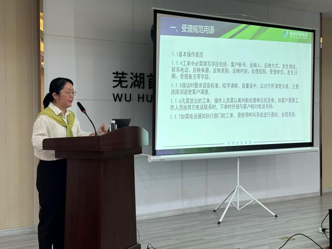 培訓(xùn)活動(dòng)在公司9樓會(huì)議室舉行,特邀馬鞍山首創(chuàng)(城市公司)總工辦主任兼材料供應(yīng)部經(jīng)理琚國(guó)慶、供水管理部副經(jīng)理齊昊、熱線班主管蔡立榮、營(yíng)商環(huán)境專員方倩等來蕪交流??偨?jīng)理孟宏濤對(duì)馬鞍山首創(chuàng)(城市公司)同志的到來表示熱烈歡迎,并感謝在百忙之中抽出時(shí)間對(duì)蕪湖首創(chuàng)客服、信息化等業(yè)務(wù)方面問題進(jìn)行指導(dǎo)。